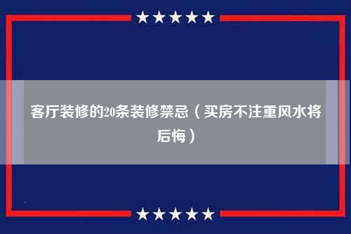 买房不注重风水将后悔,客厅装修你必须知道20条禁忌。客厅在人们的日常生活中使用是最为频繁的,它的功能集聚放松、游戏、娱乐、进餐等等。作为整间屋子的中心,客厅值得人们更多关注。因此,客厅往往被主人列为重中之重,精心设计、精选材料,以充分体现主人的品位和意境。如果客厅处理不好,更会带来很多麻烦,下面小编带你看看客厅装修有哪20条禁忌。