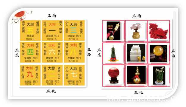 8、东北方(九紫贵人星)喜神位:旺姻缘、感情