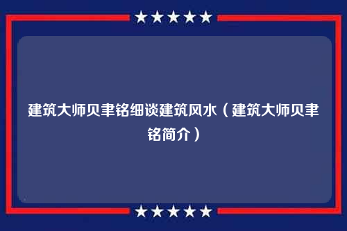 建筑大师贝聿铭细谈建筑风水(建筑大师贝聿铭简介)
